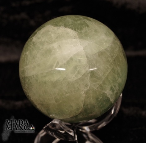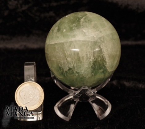 Sfera in Fluorite verde di bella trasparenza, realizzata a mano, provenienza Madagascar, diametro cm.5,9 peso gr.342,3.