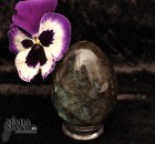 Uovo in Labradorite con riflessi di colore blu e verde, realizzato e lucidato a mano, dimensioni cm.5,1x6,9h.