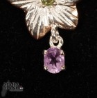 Ciondolo in Argento 925 con placcature in oro rosa con ametista e peridoto al centro del fiore, dimensioni cm.1,7x3,3H gancio incluso, peso 3,1 grammi.