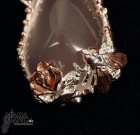 Collana in Argento 925 con placcature in oro rosa, con bel quarzo rosa a goccia, due peridoti e piccole rodoliti.