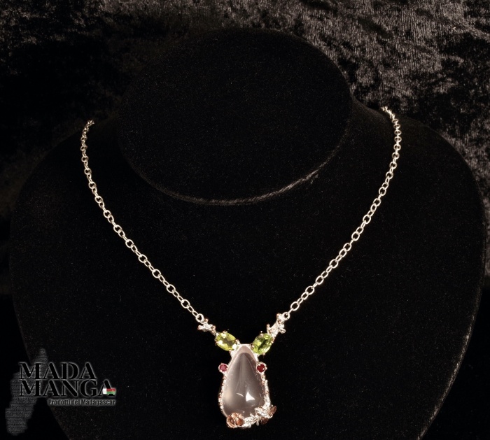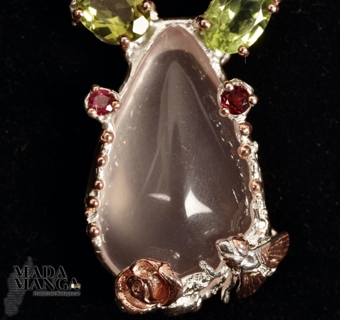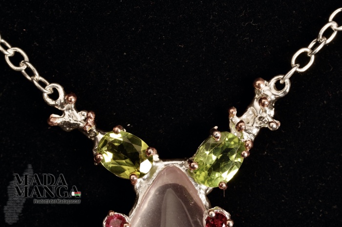 Collana in Argento con Quarzo Rosa, Peridoti e Rodoliti