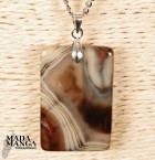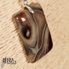 Ciondolo in Agata dalle bellissime fasciature, dimensioni cm.2,1x3,3H, peso 9,8 grammi, venduto con catenina in acciaio.