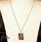 Ciondolo in Agata dalle bellissime fasciature, dimensioni cm.2,1x3,3H, peso 9,8 grammi, venduto con catenina in acciaio. La confezione regalo consiste in scatolina in carta antemoro.