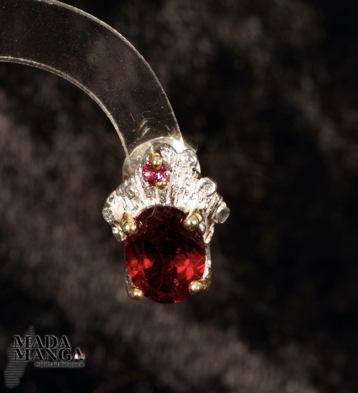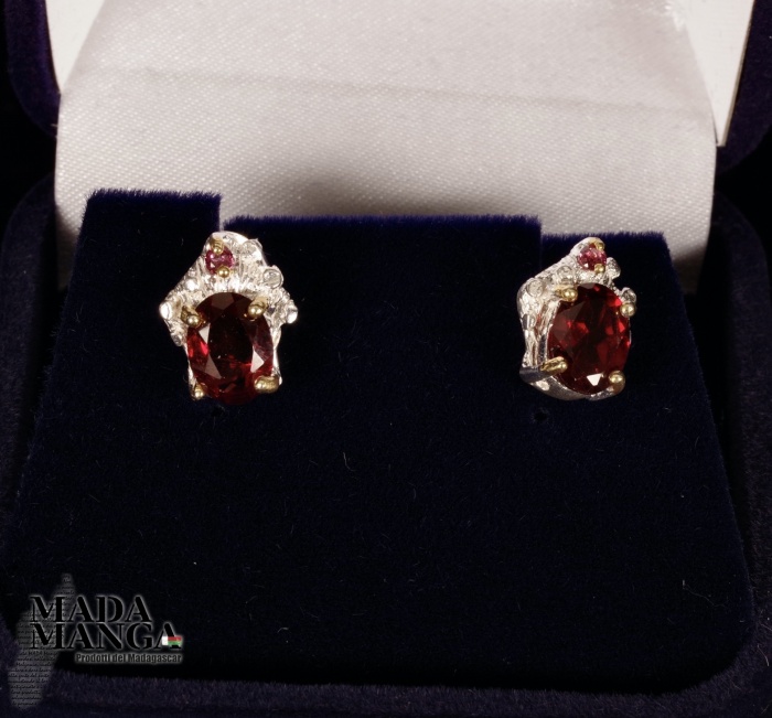 Orecchini in Argento 925 con placcature in oro giallo con Granati, dimensioni mm.9x11H, peso complessivo 3,1 grammi. Venduti con scatolina regalo. Gli orecchini sono realizzati artigianalmente in pezzo unico per modello.