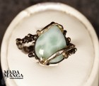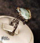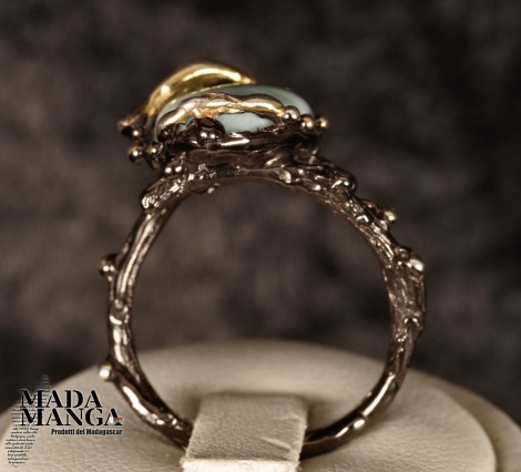 Anello in Argento 925 rodiato con rodio nero e con placcature in oro giallo, con Larimar da mm.11x13.