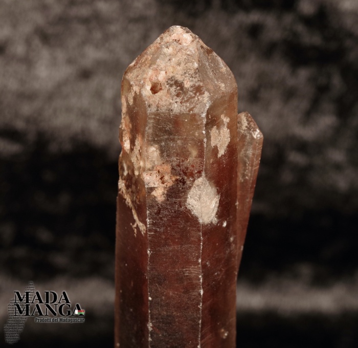 Quarzo grezzo fumè con fantasma ematoide ed inizio di autorigenerazione alla base, dimensione cm.19x1,7x7H, peso 35 grammi, provenienza Madagascar.