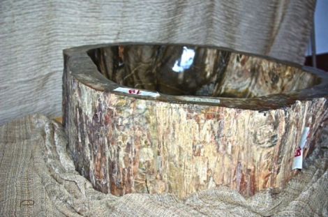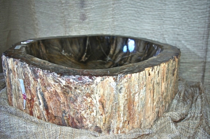 Lavandino in legno fossile ricavato da un unico blocco,lavorato e lucidato all interno ed all esterno con corteccia,con foro per sifone scarico acqua, dimensioni 75x66x22 cm altezza peso kg119,trasporto da concordare al momento dell acquisto