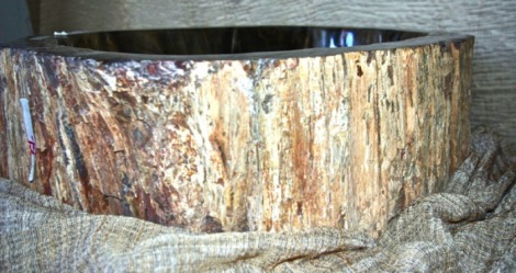 lavandino in legno fossile con corteccia cm.75x66x22H