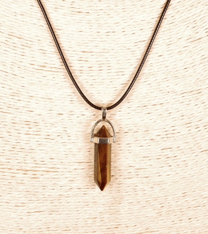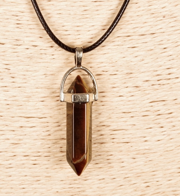 Ciondolo a punta in Occhio di Tigre, dimensioni mm.14x42H.