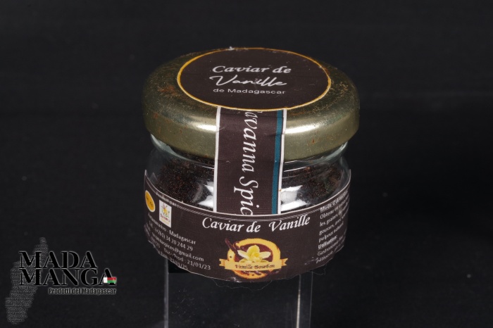 Caviale di Vaniglia Bourbon del Madagascar, vasetto da 25 gr. Il caviale di vaniglia è costituito dalla polpa che si estrae dalle bacche. E' un concentrato di profumo e sapore.