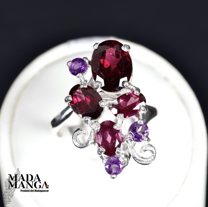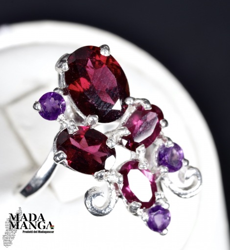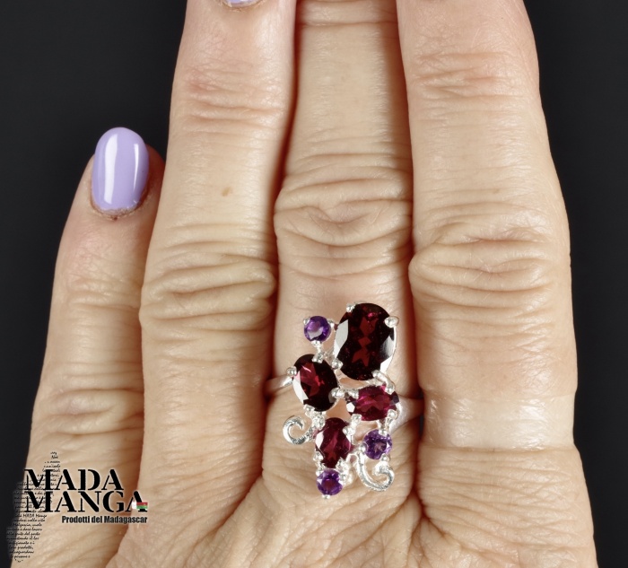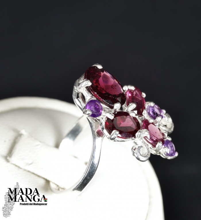 Anello in Argento con Rodoliti e ametiste