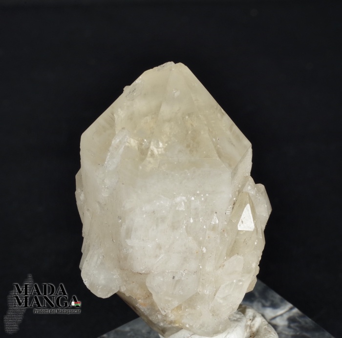 Quarzo ialino biterminato con piccoli cristalli di crescita esterni, dimensioni cm.2,2x2,8x4,5, peso 32,4 grammi. Provenienza Madagascar.