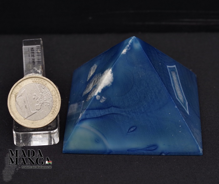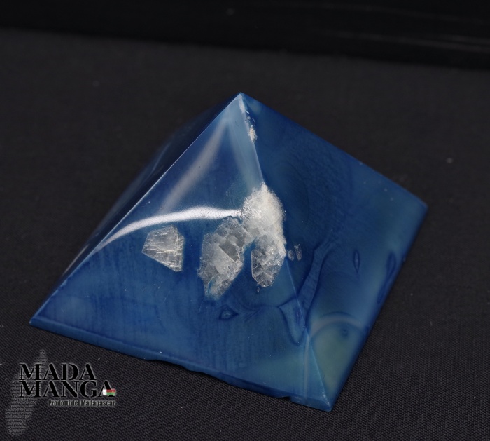 Piramide in agata con inclusione di cristalli di quarzo, dimensioni cm.5,9x5,9x4,4H. Peso 144,6 grammi.