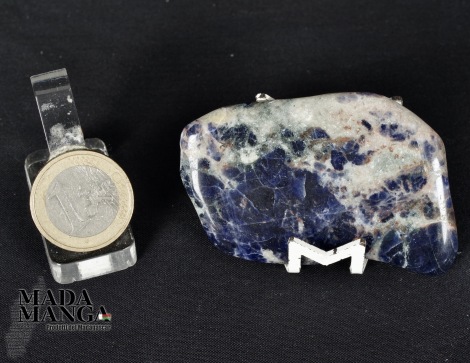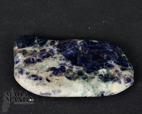 Sodalite in forma libera, dimensioni cm.6,1x4,4x0,7, peso 35,6 grammi.