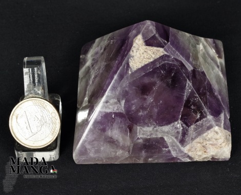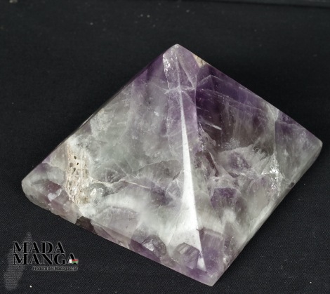 Piramide in Ametista, dimensioni cm.7x7x5,7H. Peso 327,5 grammi.