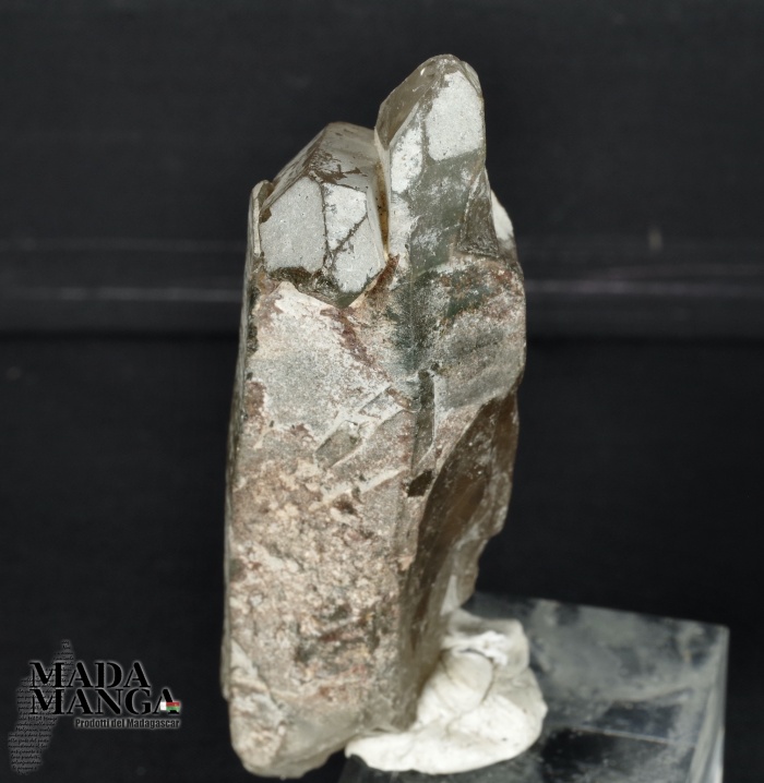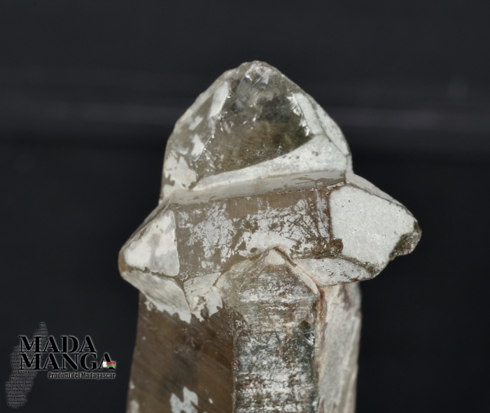 Quarzo grezzo fumè con quarzo biterminato a ponte