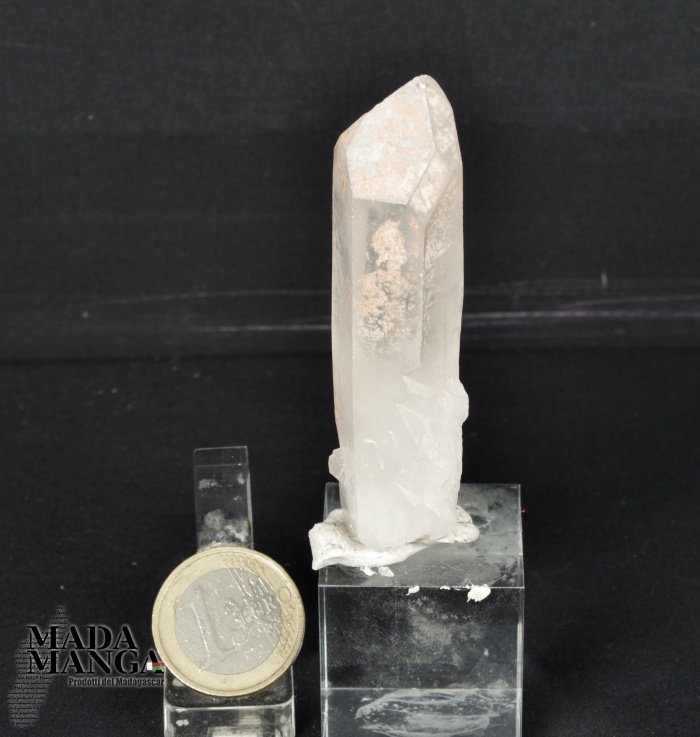 Quarzo ialino grezzo con time link destro, dimensione cm.2x2,1x7,7H, peso 44 grammi, provenienza Madagascar.