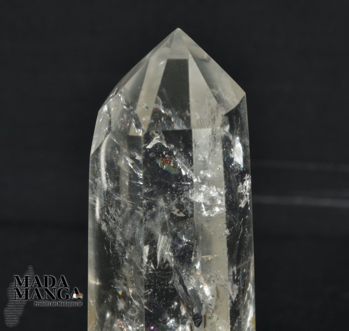 Punta in Quarzo Ialino lucidato con luminoso arcobaleno, provenienza Madagascar, dimensioni cm.3,1x2,7x7H, peso 62,7 grammi.