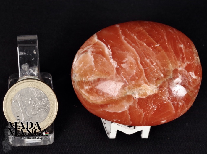 Calcite arancio in forma libera, lavorata e lucidata a mano, dimensioni cm.5,4x4,4x3,2, peso 92,4 grammi. Provenienza Madagascar.
