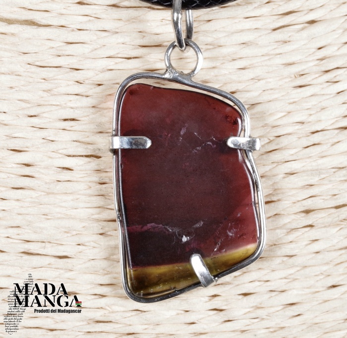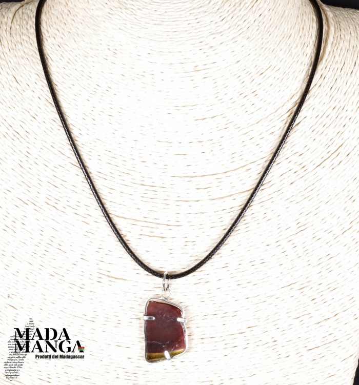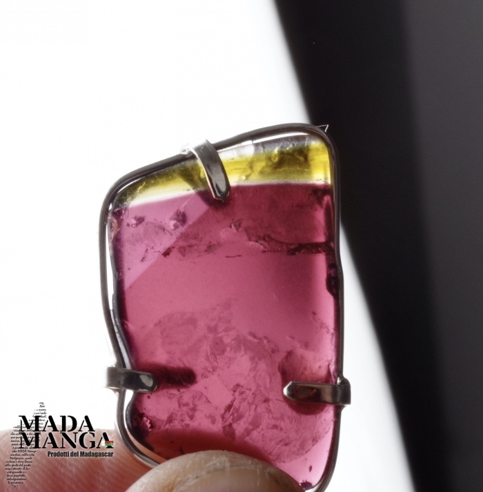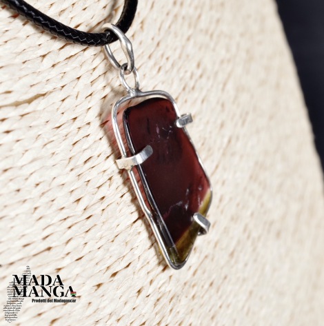 Ciondolo in Tormalina policroma con montatura in argento, dimensioni cm.1,7x2,7H. Venduto con laccetto in corda cerata.