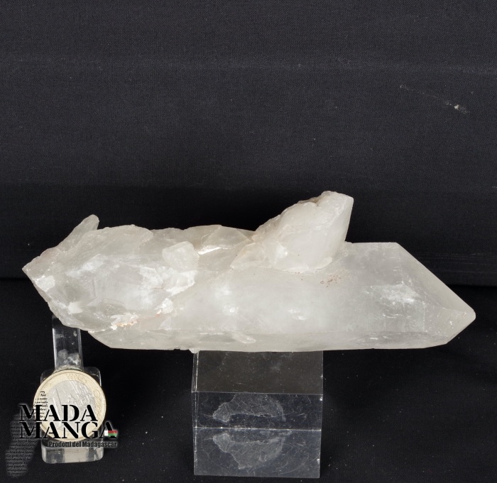 Quarzo ialino Biterminato grezzo con intersezione di un quarzo, dimensioni cm.2,8x5,8x14, peso 305 grammi. Provenienza Madagascar.