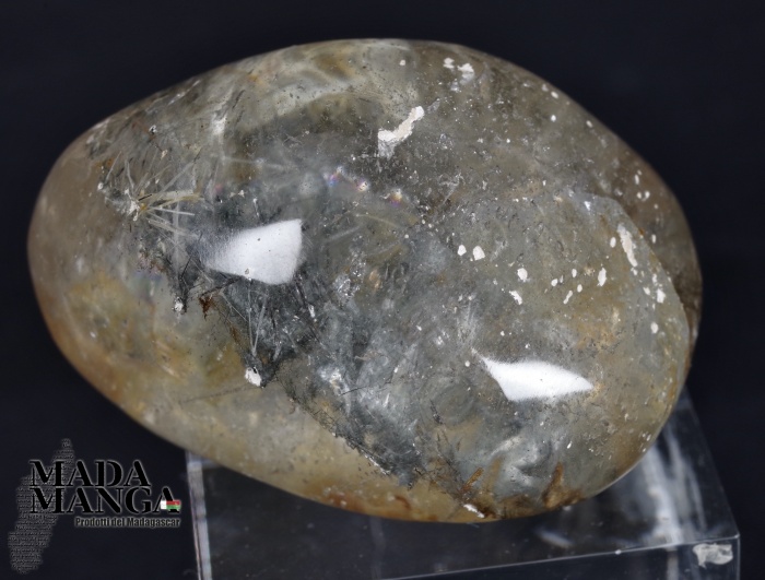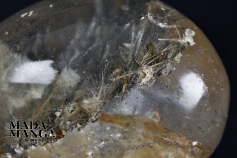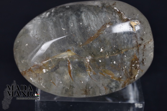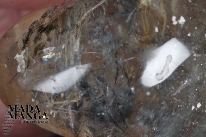 Quarzo in forma libera con inclusioni di rutili e inclusioni ematoidi, dimensioni cm.3,5x2,7x2,5 peso 35 grammi.