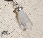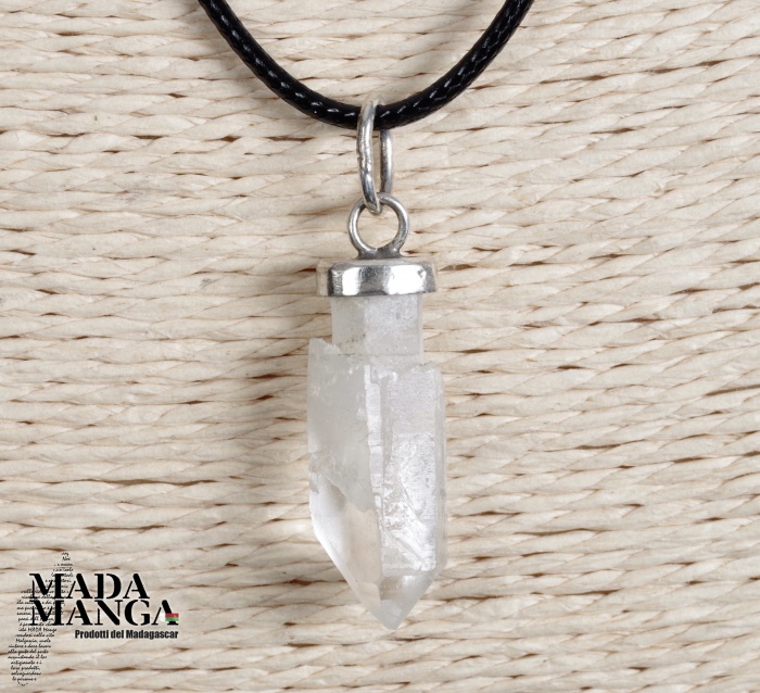 Ciondolo con Quarzo grezzo a scettro montato con cappuccio in Argento, dimensioni cm.1x0,8x2,5H, peso 3,7 grammi.