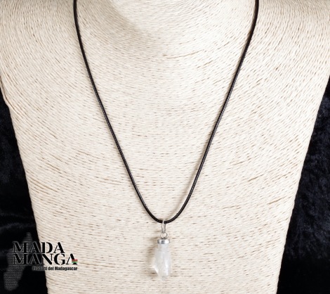 Ciondolo con Quarzo grezzo a scettro montato con cappuccio in Argento, dimensioni cm.1x0,8x2,5H, peso 3,7 grammi. Venduto con laccetto in corda cerata. La confezione regalo consiste in sacchetto in tulle e scatolina in carta antemoro.
