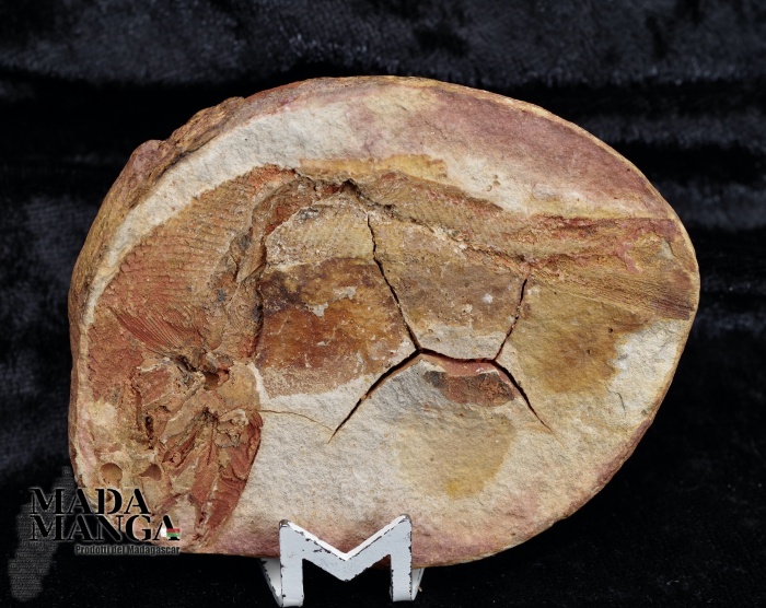 Pesce Fossile provenienza Madagascar, ottima conservazione del calco, ben visibili le scaglie e le pinne caudali e la coda perfettamente conservata, dimensioni nodulo cm.8,2x6x3 spessore, peso 162,8 grammi.
