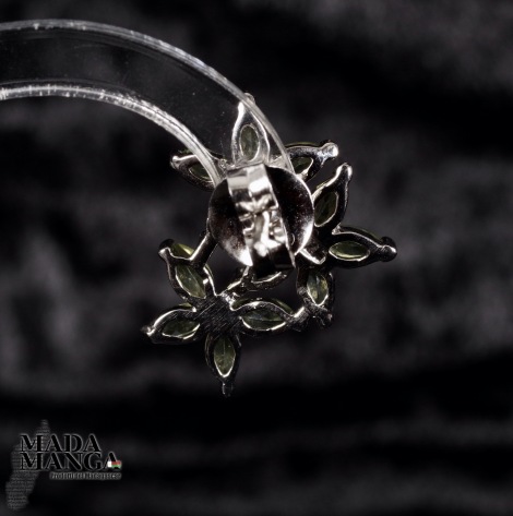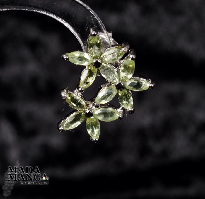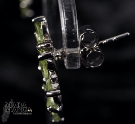 Orecchini in Argento 925 con placcature in oro bianco con Peridoti da mm.4x2, dimensioni cm.1,4x1,6H, peso 2,4 grammi.