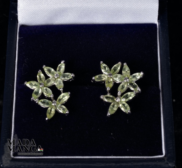 Orecchini in Argento 925 con placcature in oro bianco con Peridoti da mm.4x2, dimensioni cm.1,4x1,6H, peso 2,4 grammi. Venduti con scatolina regalo. Gli orecchini sono realizzati in pezzo unico per modello.