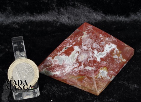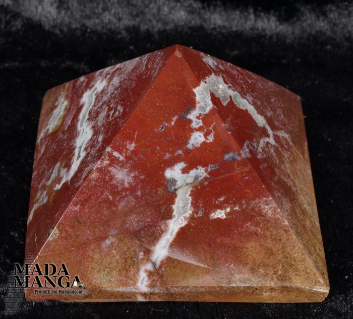 Piramide in diaspro rosso del Madagascar di colore vivace, dimensioni cm.5,8x5,8x4,1H. Peso 162 grammi.