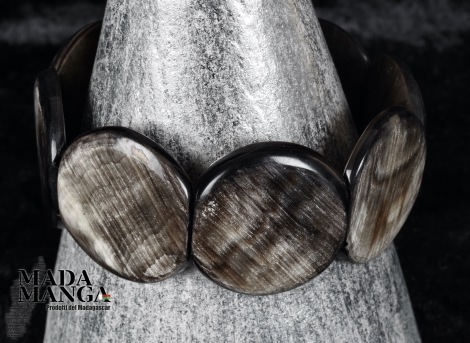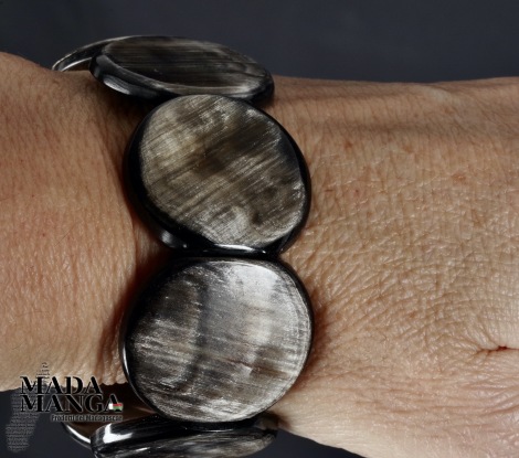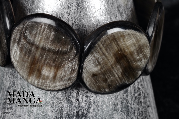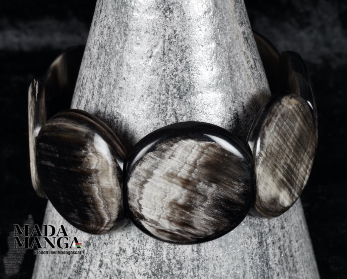 Braccialetto elastico in corno diametro degli elementi cm.2,8, realizzato artigianalmente.