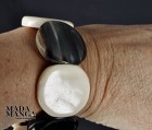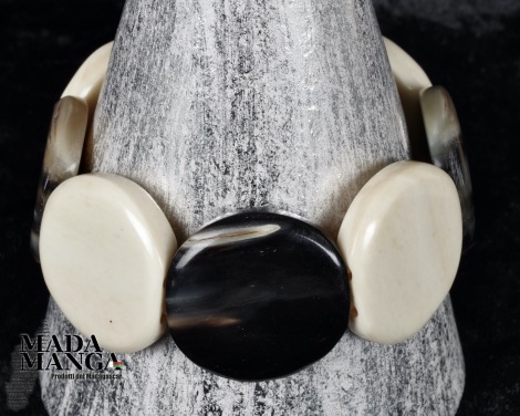 Braccialetto elastico in corno di zebù e osso diametro degli elementi cm.2,8, realizzato artigianalmente.