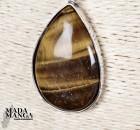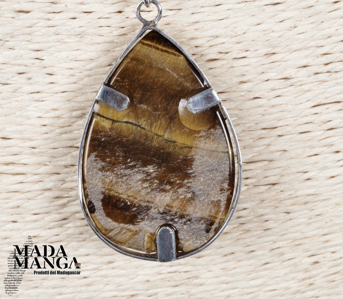 Ciondolo a goccia in Occhio di Tigre montato in argento, dimensioni cm.2,8x4,1H, peso 14,3 grammi.