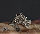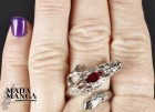 Anello in Argento 925 a forma di dragone con placcature in oro bianco, con rodolite da mm.8x4.