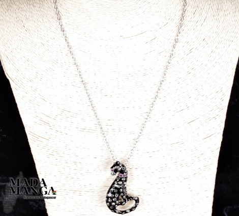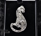 Spilla a forma di pantera in argento 925 con smalto nero, con rubini per il collare e l'occhio e marcasiti. Dimensioni cm.2,8x4,8, peso 7,7 grammi. E' possibile portarla anche come ciondolo in quanto l'ago è messo in verticale. Venduta con scatolina regalo.