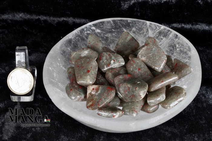 Eliotropio burattato, dimensioni medie cm.2,5 a cm.3, peso 4/5 grammi. I pezzi inviati potrebbero essere differenti da quelli delle fotografie.