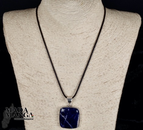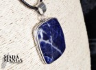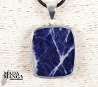 Ciondolo in Sodalite montato in argento, dimensioni cm.3,2x3,5H peso 13 grammi. Venduto con laccetto in corda cerata. La confezione regalo è composta da sacchetto in tulle e scatolina in carta antemoro.