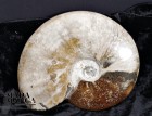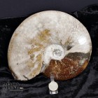 Grande Ammonite intera lucidata, con porzione di guscio iridescente, dimensioni cm.22,5x19,5x4,7 sp., peso kg.2,48.