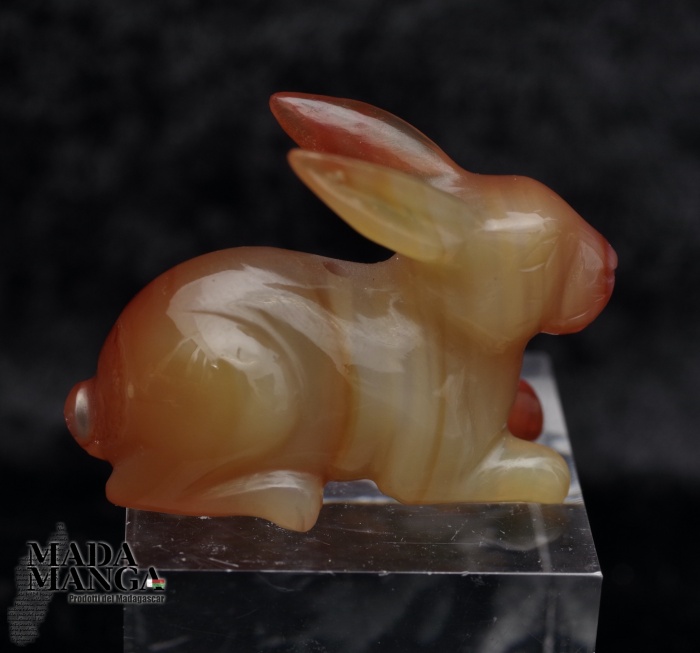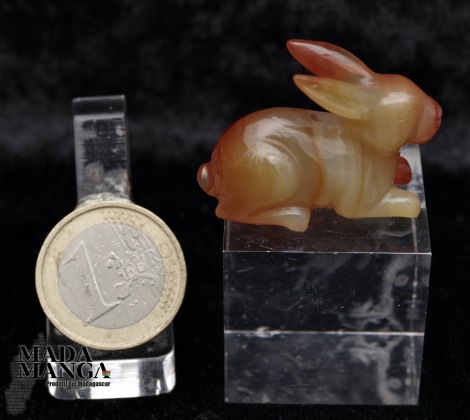 Coniglietto in Corniola, scolpito a mano, dimensioni cm.3,6x1,7x2,6H, peso 13,7 grammi.