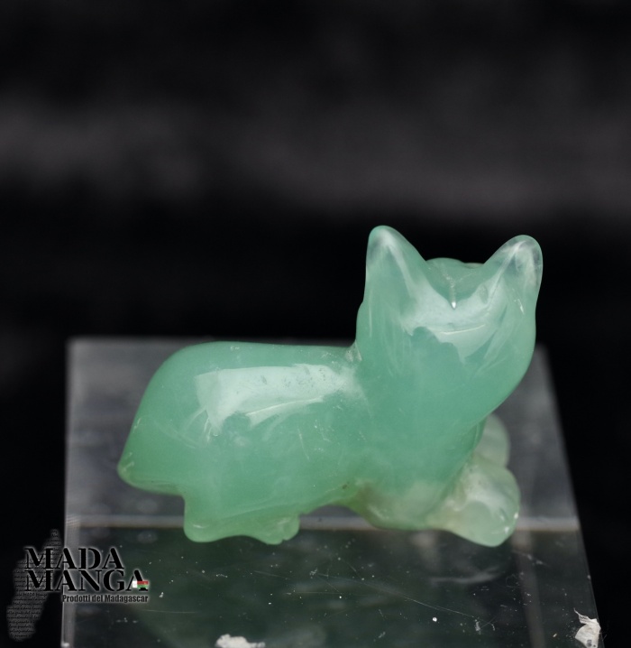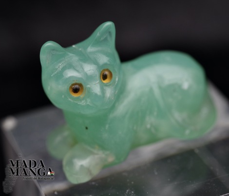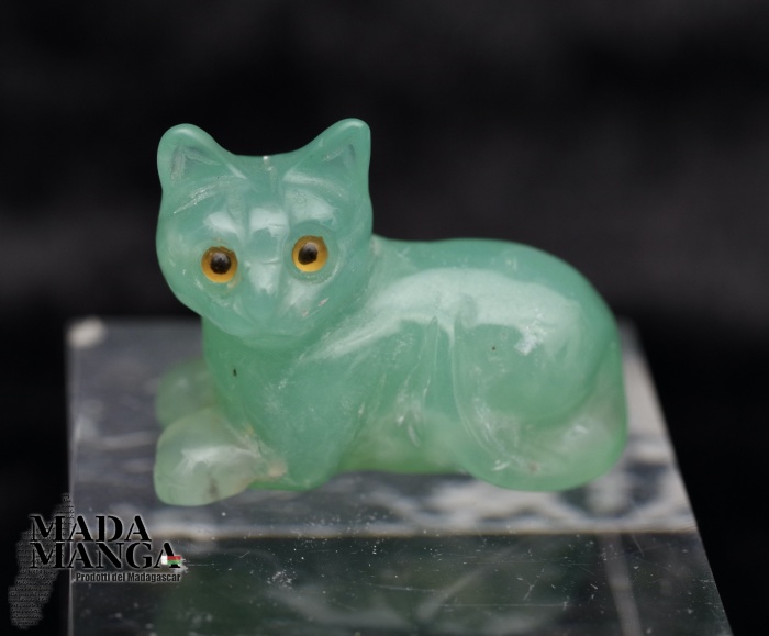 Gatto in Crisoprasio, scolpito a mano, dimensioni cm.2,3x1,1x1,9H, peso 5,4 grammi.