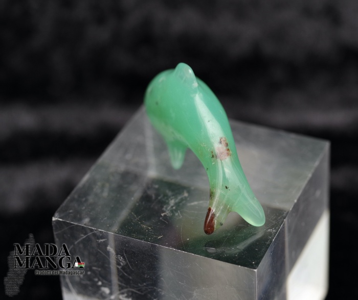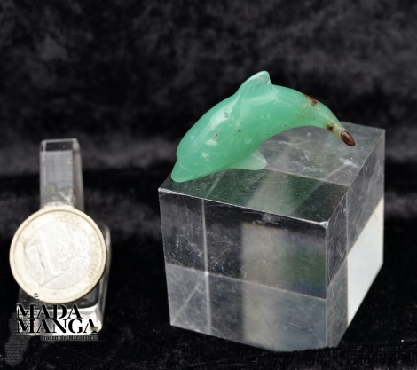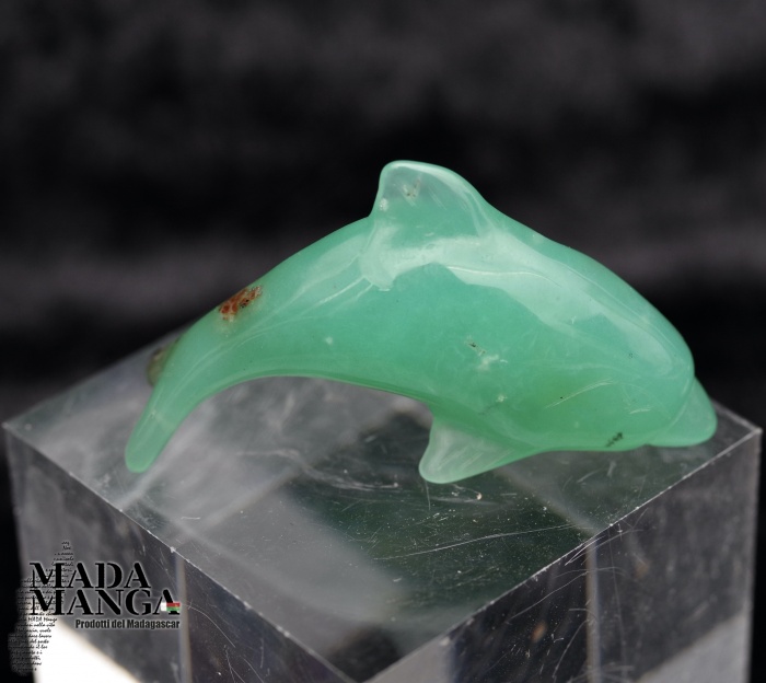 Delfino in Crisoprasio di bellissima qualità, scolpito a mano, dimensioni cm.4,3x1,1x2,4H, peso 9,3 grammi.