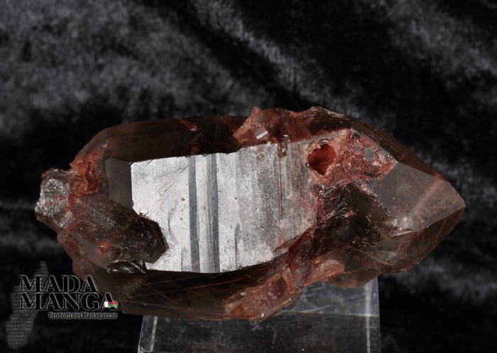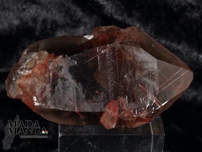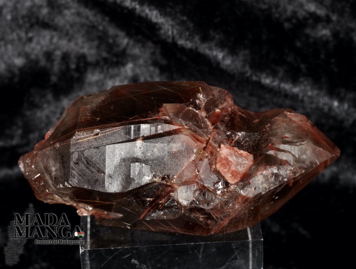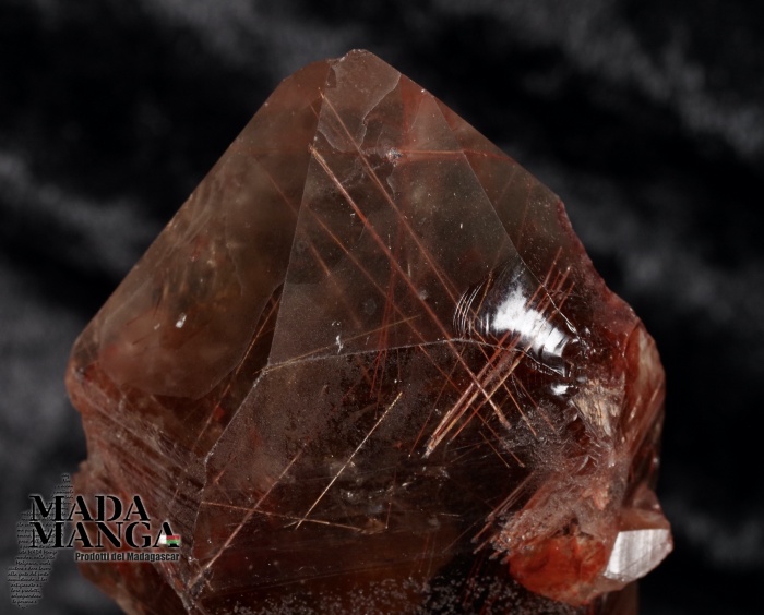 Quarzo fumè biterminato con inclusione di rutili, dimensioni cm.3,9x2,9x7,2, peso 91,6 grammi.