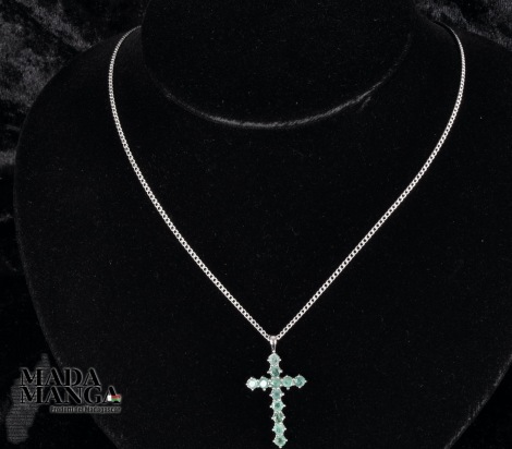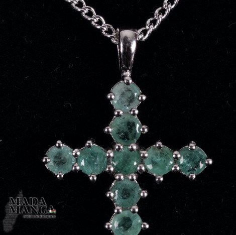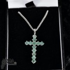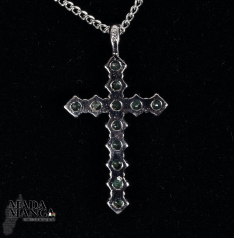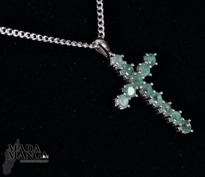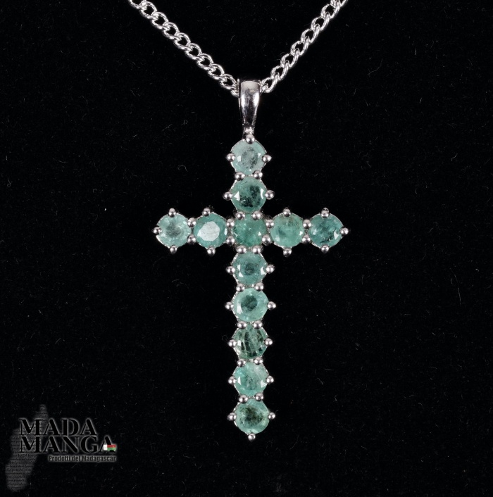 Ciondolo a forma di croce in Argento 925 placcato oro bianco con n°12 smeraldi da mm.4x4.