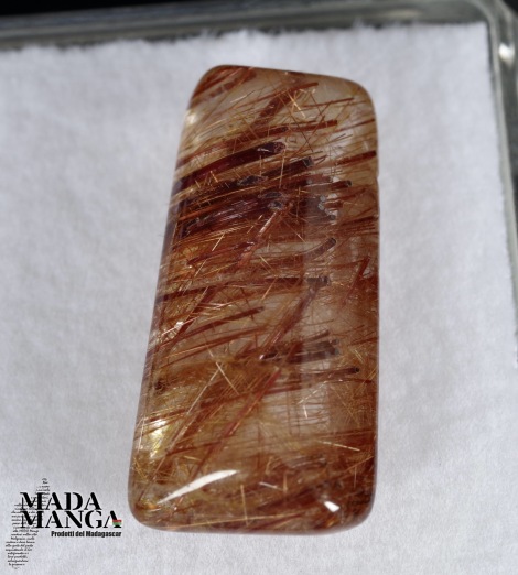 Quarzo fumè con inclusioni di rutili color bronzo, dimensioni cm.2,5x1,3x0,7 spessore, ct.16,30.
