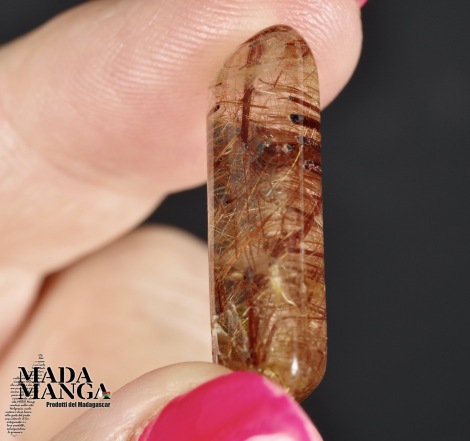 Quarzo fumè con inclusioni di rutili color bronzo, dimensioni cm.2,5x1,3x0,7 spessore, ct.16,30. Adatto per realizzare ciondolo od anello.