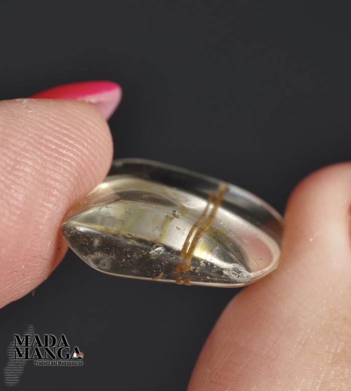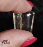 Quarzo con inclusioni di rutili color oro, dimensioni cm.1,7x1,5x0,8 spessore, ct.14,6.