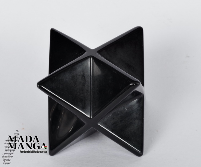 Merkaba realizzata in ossidiana, dimensioni cm.2,5x2,58, peso 25 grammi.