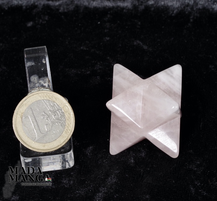 Merkaba realizzata in quarzo rosa, dimensioni cm.2,5x2,5, peso 30 grammi circa. E' possibile ricevere l'oggetto di colore leggermente diverso dalla fotografia in quanto i pezzi non sono tutti perfettamente uguali.